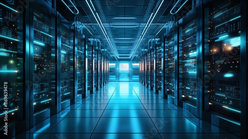 Modern Datacenter With Computer Server Cabinets And Racks