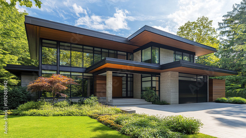 modern, detached, home, sharp, design, large, window, architecture, contemporary, house, exterior, glasses, facades, minimalist, landscaping, greenery, luxury, residential, building, sleek, stylish, lawn, tree, sky, sunlight, driveway, entrance, porch, urban