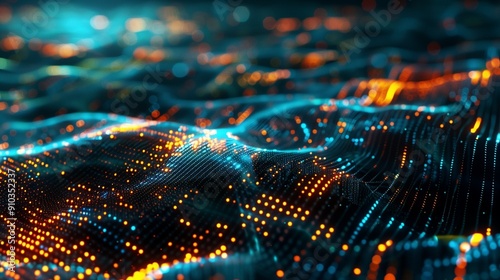 Modern digital abstract 3D background. Can be used in the description of network abilities, technological processes, digital storages, science, education, etc. Copy space. Based on Generative AI