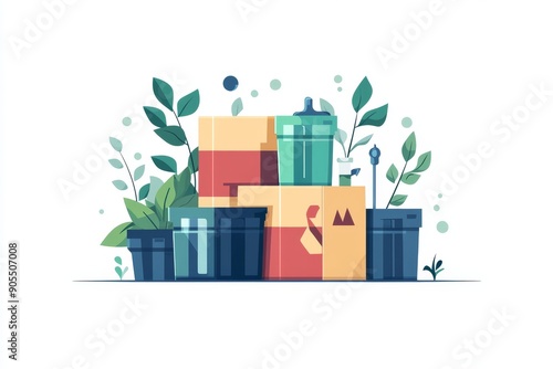 Modern eco-friendly gift wrapping ideas illustrated with recyclable materials and botanical embellishments for sustainable gifting.