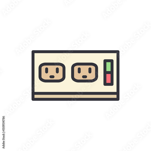 mains outlet, electric, outlet, power, energy, electricity, device, equipment, connection, supply, receptacle, electrical, appliance, charger, adapter, plug, cord, safety, wall, hardware, current, household, voltage, home, domestic, flat, style, element, simple, symbol, technology, contemporary, illustration, design, drawing, pictogram, signs, communication, apartment, block, cartoon, icon, modern