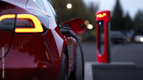 red car, innovation, environmentally friendly, technology, urban setting, automotive, energy, transportation, plug-in, power source, clean energy, electric power, infrastructure, road, city, environment, convenience, travel, electric car, vehicle, battery, renewable energy, energy efficiency