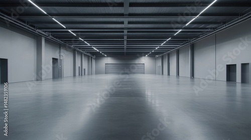 Modern Empty Warehouse Interior with Sleek Concrete Flooring