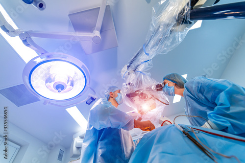 Modern equipment in operating room. Medical devices for neurosurgery. Background. Operating theatre. Selective focus. Neurosurgery concept.