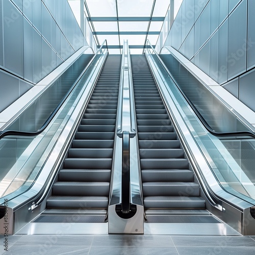 Modern Escalator in Contemporary Building Interior - Urban Architecture and Transportation Concept
