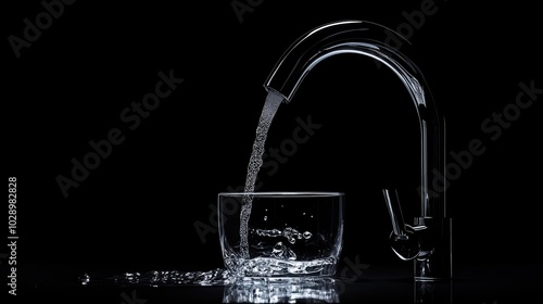 water, flow, faucet, glasses, bowl, liquid, stream, motion, splash, clean, design, container, kitchen, plumbing, clear, nature, freshness, dripped, purity, excitement, refreshment, still, dark, light, reflective, minimalism, detail, elegance, close, surface, hydratation, simplicity, facet, photo, art, environment, indoor, trend, lifestyle, shiny, droplet, gravity, style, contemporary, material, setup, aesthetic, clarity