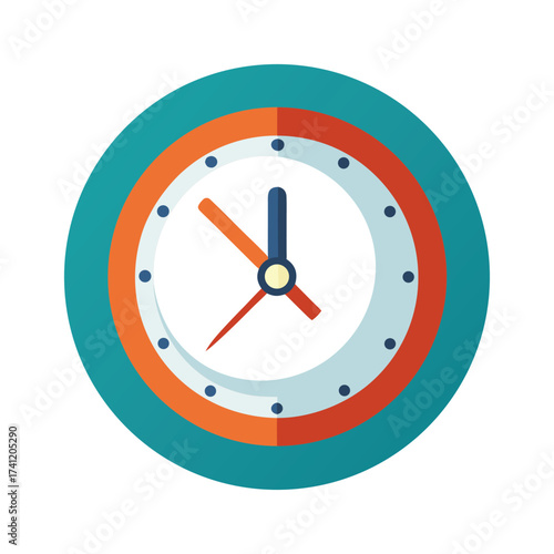 clock, time, watch, face, dial, circular, round, modern, illustration, graphic, icon, symbol, concept, design, abstract, minimalist, simple, clean, vector, art, drawing, visual, element, object, horologe, hours, minute, second, hand, pointer, measurement, schedule, deadline, punctual, appointment, meeting, business, work, life, day, night, orange, teal, blue green, contrast, bold
