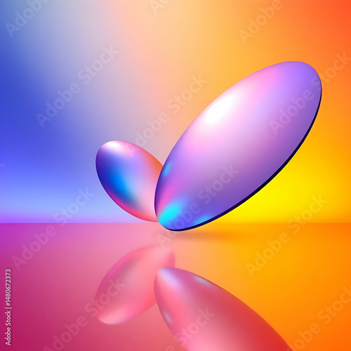 Modern Flat Design Graphics – Vibrant Gradient Background with Iridescent Shapes – Low-Angle Perspective for Presentations
