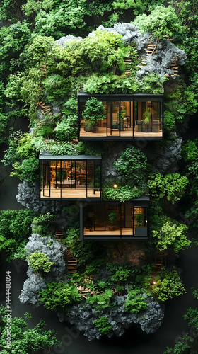 architecture, modern, glasses, home, greenery, cliff, rock, stair, wooden, nature, exterior, residence, design, building, lush, vegetation, structure, vertical, stacked, level, habitat, dwelling, retreat, sanctuary, oasis, secluded, tranquil, serene, peaceful, organic, minimalist, contemporary, sustainable, innovative, unique, elevated, forest, jungle, foliage, plant, tree, environment, landscape, vista, view, scenery, escape, luxury, serenity