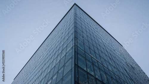 glasses, geometric, detail, sky, reflections, office, urban, perspective, design, window, tall, contemporary, city, corner, building, architecture, structure, daylight, empty, modern, exterior, commercial, facades, skyscraper, pattern