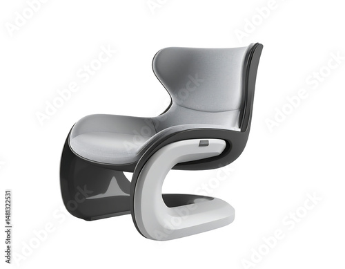 chair, modern, lounge, grey, black, curved, design, furniture, interior, home, contemporary, minimalist, isolated, transparent, background, upholster, comfortable, ergonomic, stylish, sofa, living, room, bedchamber, accent, armchair, seating, armrest, backrest, upholstery, texture, light, shadow