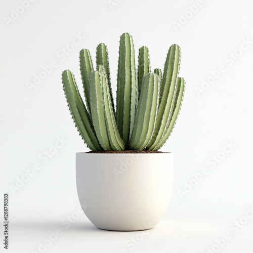 Modern Green Cactus in White Pot on Minimalist Background