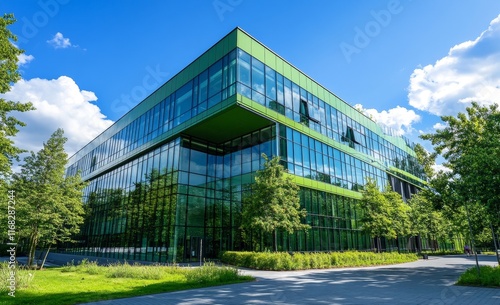 building, office, green, glasses, modern, architecture, business, corporate, commercial, contemporary, structure, design, facades, exterior, sunlight, sky, cloud, tree, landscape, park, environment, sustainable, eco, energy, efficient, technology, innovation, growth, success, future, development, property, real, estate, urban, city, scene, view, day, summer, bright, clean, professional, company, workplace, industry
