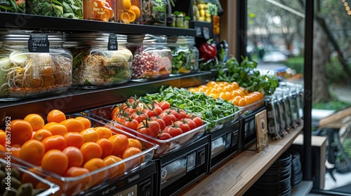 grocery, store, interior, fresh, fruit, vegetable, shelf, organic, produce, healthy, food, shopping, concept, retail, photo, product, display, market, modern, aisle, nourishment, variety, assortment, consumer, supermarket, business, commerce, sale, eating, vitamin, diet, natural, colourful, green, tomatoes, orange, jar, packaged, layout, purchase, buy, ingredient, culinary, raw, whole, selection, choice, quality, environmentally friendly