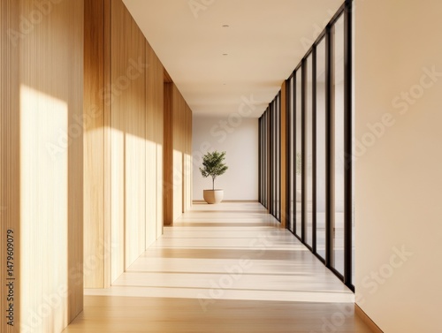 hallway, modern, architecture, interior, design, wood, wall, light, home, window, house, plant, minimalist, sunlight, room, empty, floor, style, contemporary, indoor, perspective, decor, clean, nobody, bright, narrow, geometric, minimal, simple, shadow, natural