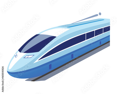 Modern high speed train vector illustration with blue color palette isolated on white background,public transportation,railway travel,urban mobility