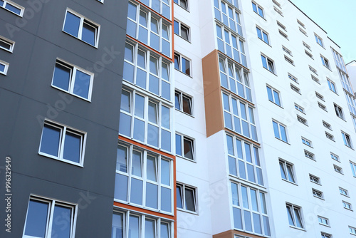 Modern high-rise buildings close-up windows of the house. Multi-storey residential building
