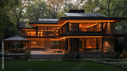 home, modern, house, architecture, design, luxury, exterior, lighting, contemporary, illuminated, night, tree, garden, stone, glasses, patio, deck, solar, energy, sustainable, residence, property, home, beautiful, stylish, elegant, landscape, residential, renovation, construction, building