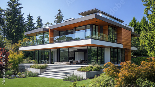 modern, home, level, glasses, facades, lush, setting, architecture, contemporary, house, exterior, design, residential, luxury, greenery, landscape, patio, window, tree, garden, lawn, step, balcony, stylish, elegant, roomy, natural, environment