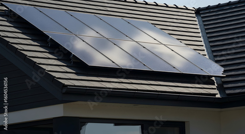 solar panel, solar energy, renewable energy, roof, rooftop, house, home, residential, sustainable, energy efficiency, photovoltaic, electricity, clean energy, environment, green energy, environmentally friendly, alternative energy, power generation, modern architecture, roofing, energy conservation, climate change, home improvement, real estate, property, exterior, building, architecture, construction, sunlight, cloud, sky, innovation, technology, domestic, housing, suburban, neighbourhood, community, investment, future