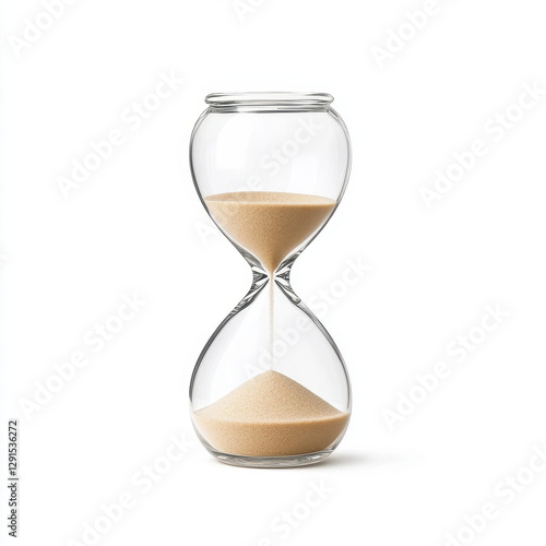 modern hourglass timer made of polished glass, filled with fine sand, symbolizes passage of time. Its elegant design adds touch of sophistication to any space