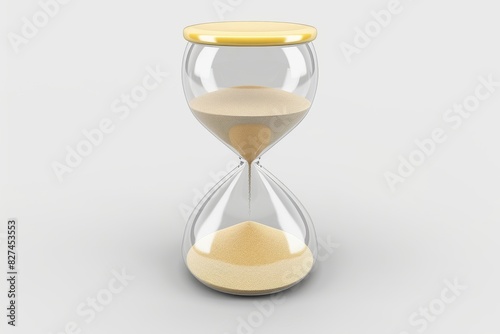 Modern hourglass with yellow sand on a white background symbolizing the passage of time in a sleek design