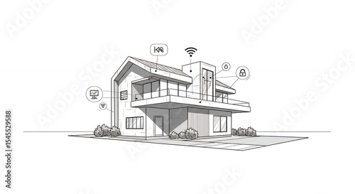 house, home, architecture, building, design, drawing, vignetting, modern, greyscale, structure, exterior, building design, illustration, graphic design, residential, contemporary, technology, connectivity, wireless, digital illustration, isometric, crayons, vector, plan, isolated, sketching