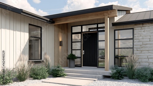 house, entrance, exterior, modern, black, door, stone, window, contemporary, building, architecture, residential, home, design, landscaping, yard, plant, daytime, outdoors, facades, step, grey, wood, wall, light, structure, property, real estate, architectural, urban, lifestyle, domestic, dwelling, construction, natural, sunny, daylight, building exterior