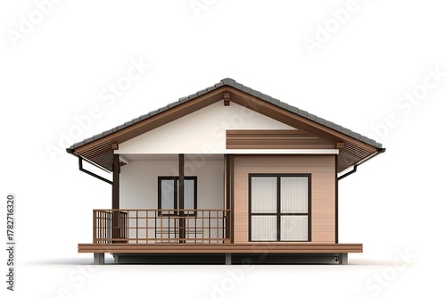 Modern House Exterior: A minimalist architectural design showcases a charming single-family home with a clean white facade, dark gray roof, and subtle wood accents