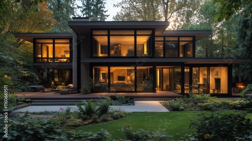 modern, house, contemporary, design, exterior, large, window, twilight, lush, greenery, landscaping, home, architecture, lighting, serene, environment, peaceful, setting, space, garden, warm, glow, nature, residential, area, luxury, living, sleek, line, minimalist, style, evening, light, stylish