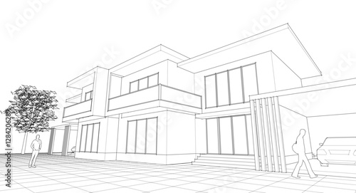 modern house sketch 3d illustration