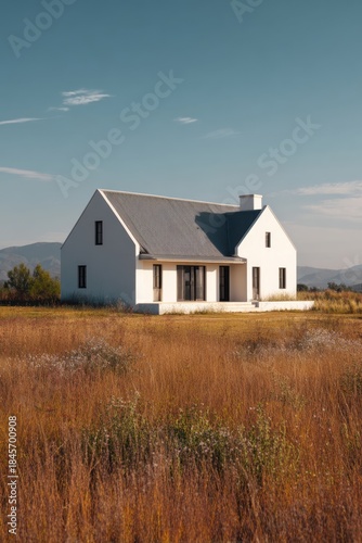 house, grassy, field, mountain, countryside, sunny, day, clear, sky, architecture, rural, home, nature, landscape, structure, field, exterior, building, scenery, modern, solitude, outdoors, blue, vegetation, design, simplicity, sunlight, property, peaceful, warm, open, space, residential, view, environment, flat, land, summer, green, living, agriculture, calmness, farm, country, life, scenic, area, fresh, air