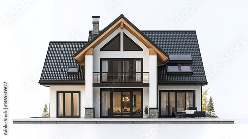 modern, house, white background, architecture, residential, exterior, contemporary, design, home, building, facades, real estate, property, structure, family, living, outdoors, front view, minimalist, clean, elegant, stylish, symmetric, glasses, entrance, balcony, chimney, landscaping