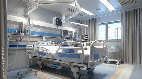 Modern ICU Patient Room with Advanced Medical Equipment in Hospital Setting for Critical Care
