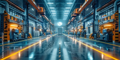 Modern Industrial Warehouse with Advanced Machinery and Bright Lighting