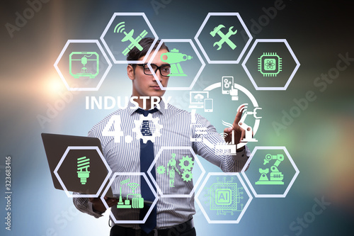 industry, 4, robotic, reality, logistic, artificial, intelligence, modern, futuristic, software, engineering, robotic, cyber, revolution, technology, industrial, factory, automation, smart, manufacturing, cyberspace, digital, robot, business, future, datum, machine, production, thing, computer, process, big, connected, computing, ai, automated, assembly, networking, equipment, digitization, arm, engineer, man, businessman, pressing, virtual, buttons