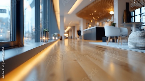 modern, interior, wood, floor, floor, window, large, minimalist, furniture, light, illumination, design, architecture, contemporary, style, sleek, elegant, clean, line, bright, roomy, airy, calm, serene, relaxing, sophisticated, chic, warm, inviting, cosy, comfortable, luxurious, upscale, hotel, lobby, cafes, eatery, bar, lounge, seating, chair, table, plant, decor, ambience, atmosphere, perspective, view