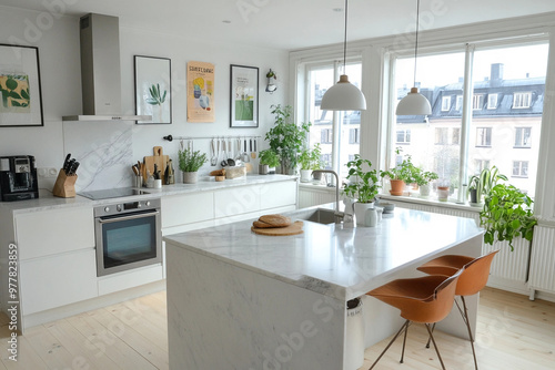 kitchen, interior, room, home, table, house, design, furniture, architecture, apartment, luxury, floor, chair, window, contemporary, cabinet, new, living, nobody, indoor, wood, sink, light, oven, wooden