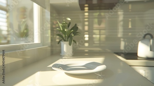 kitchen, interior, sunlight, modern, countertop, plate, plant, design, minimalist, white, bright, window, clean, home, decor, daylight, domestic, indoor, style, fresh, sleek, simplicity, contemporary, elegance, hygiene, shiny, pot, nobody, ceramic, furniture, housing, indoor, inside, kettle, model, room, surface, utensil, decoration