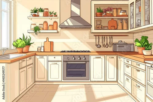 kitchen, interior, modern, design, home, appliance, plant, cooking, wood, light, room, lifestyle, decor, window, shelf, chef, space, cosy, warmth, pot, pan, countertop, bright, clean, sunlight, elegant, storage, food, utensil, modernism, furniture, trim, mint, chic, simplicity, palette, colours, rustic, urban, inviting, minimalist, baking, cookery, open, surface
