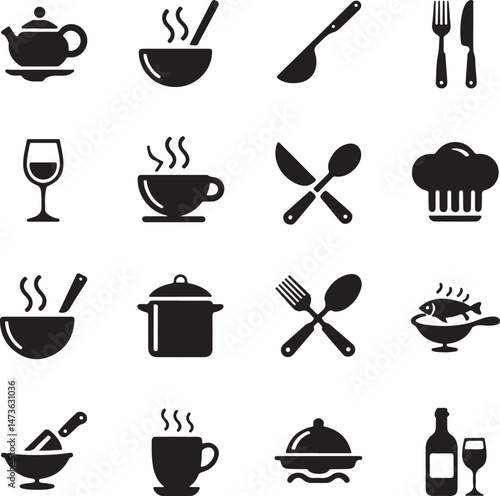 Modern Kitchen Tools Silhouette Set Cooking Utensils Hanging Vector Design Chef in Kitchen Action Silhouette Minimalist Kitchen Scene Illustration Classic Kitchenware Collection Vector