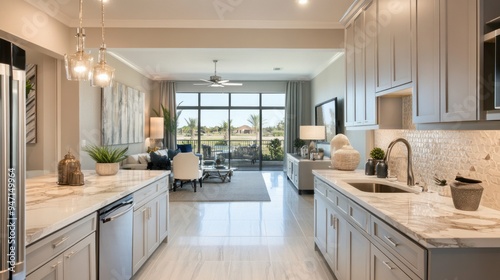 kitchen, interior, modern, home, design, luxury, house, apartment, cabinet, countertop, sink, appliance, room, floor, tile, window, view, living, space, decor, style, contemporary, furniture, glasses, light, stainless, steel, water, drain, faucet, wall, white, grey, beige, marble, wood, clean, open, plan, bright, natural
