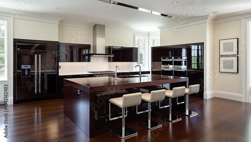 Modern kitchen with glossy surfaces and high-tech luxury appliances