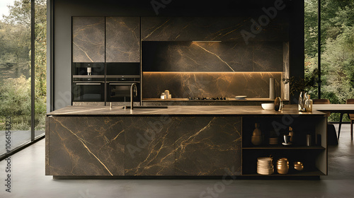 Modern Kitchen with Marble Countertops and Open Shelving, contemporary kitchen, kitchen design, kitchen interior, kitchen decor, kitchen island