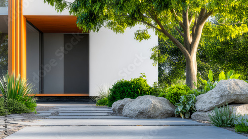 pathway, entrance, landscape, design, greenery, rock, stone, modern, plant, contemporary, home, architecture, landscaping, nature, garden, exterior, calmness, aesthetic, suppressing, attracted, residential, environment, sunlight, welcoming, stone, vegetation, natural, seasonal, upkeep, privacy, shrub, foliage, inviting, bright, element, urban, serenity, clean, line, minimalism, sustainable, living, recreation, ecology, harmony