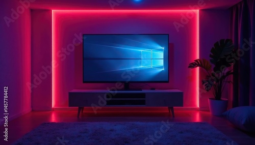 Modern LED strip lights illuminating a dark room , building, energy efficient, light emitting diode