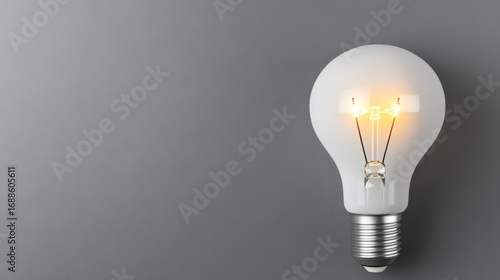 Modern Light Bulb with Glowing Filament on Gray Background