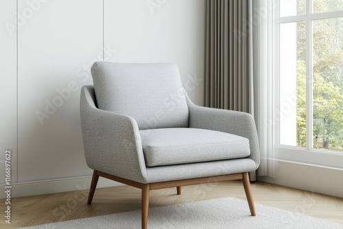 Modern Light Grey Fabric Armchair in Bright Room Interior Design