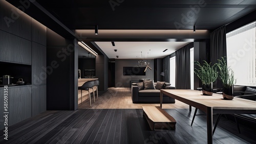 Modern living room by black wooden style, interior