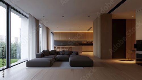 Modern living room design contemporary apartment interior photography minimalistic environment wide angle view urban lifestyle concept